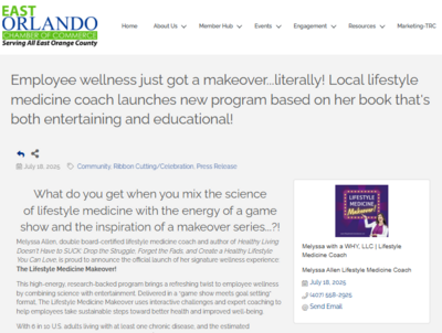 Melyssa Allen affectionately branded “Melyssa with a WHY.” A double board-certified lifestyle medicine coach, celebrated author, and engaging speaker, she’s making Downtown Orlando a brighter and healthier place to be.